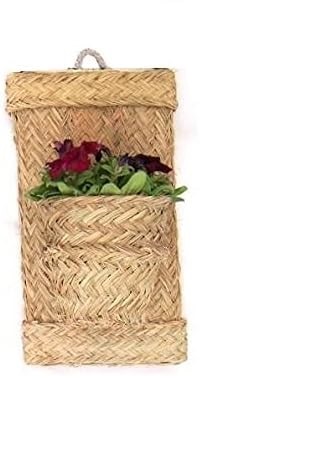 Macetero con armazón de madera y tejido a mano de forma artesanal con esparto natural. Medidas 40x22x15cm.