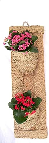 Macetero Vertical con capacidad para dos macetas. El armazón está hecho con madera y el esterior es tejido a mano de forma artesanal con esparto natural. Ideal para dar un toque tradicional a cualquier pared de su casa.