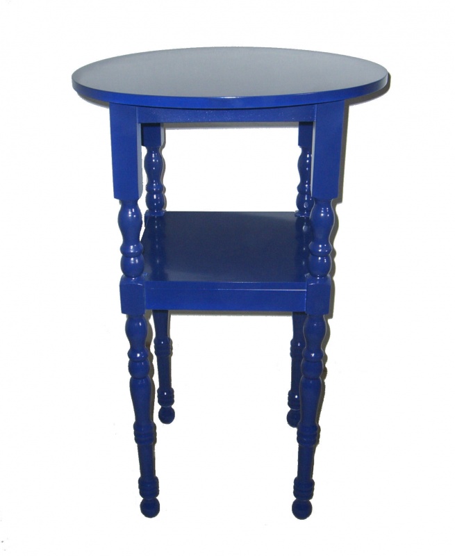 Mesa alta de bar con pata torneada y repisa inferior realizada en madera de pino con tablero de dm de 19mm. Medidas 110cm altura y tablero de 65cm de diámetro.