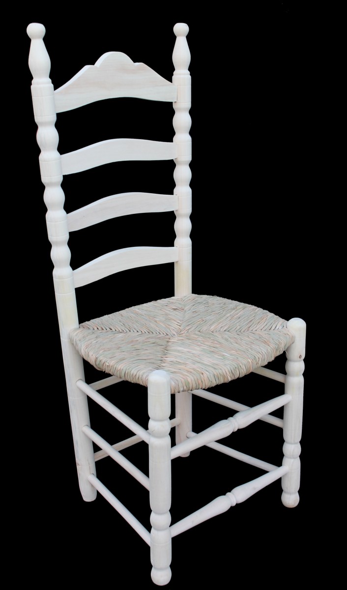 Silla en madera de chopo con asiento hecho a mano de forma artesanal con anea natural. Se pueden hacer decoradas en estilo sevillano.
