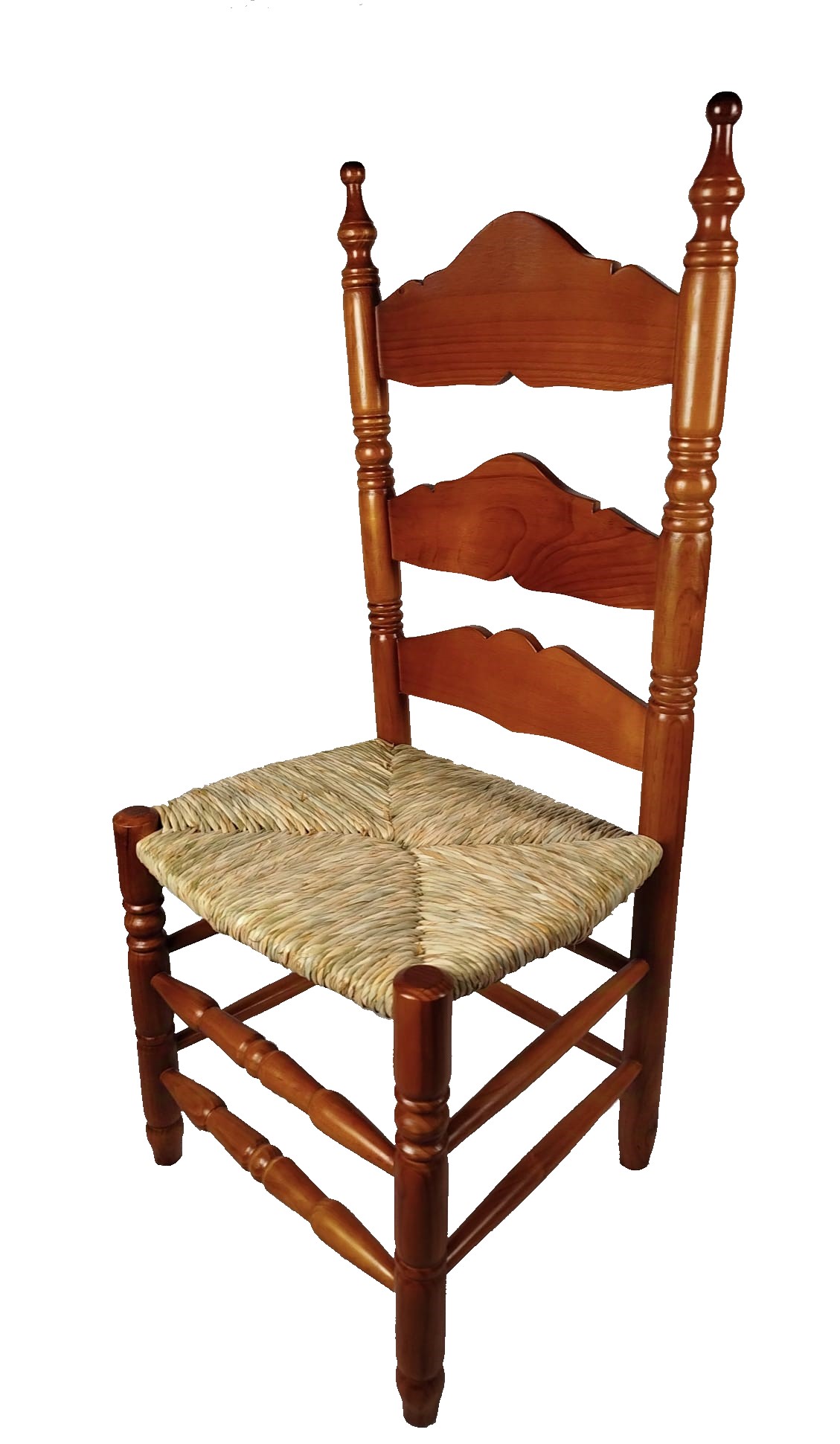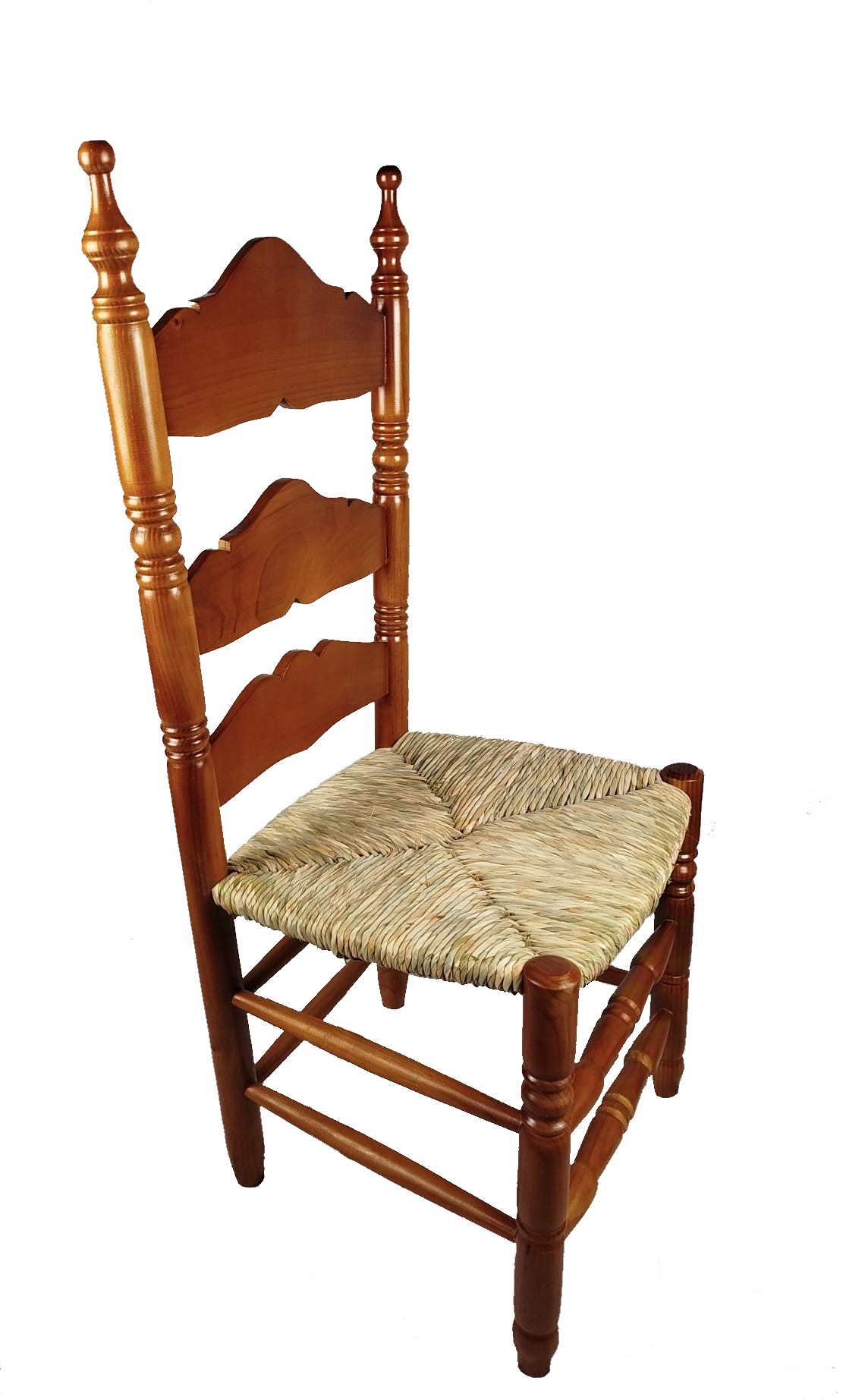 Silla en madera de Pino con Asiento tejido a mano de forma artesanal con enea natural .