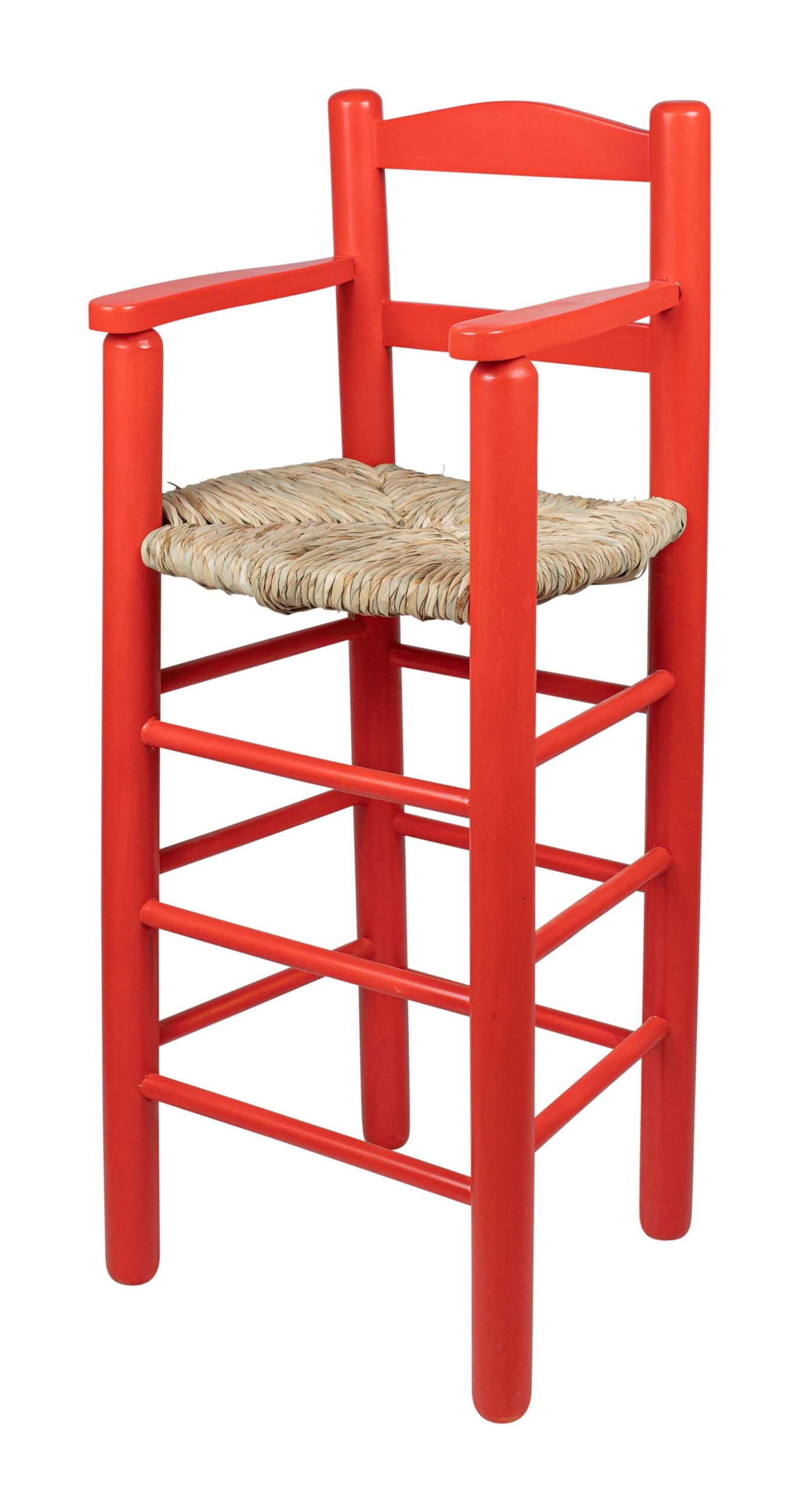 Sillón Trona Infantil en madera de chopo con asiento hecho a mano de forma artesanal con anea natural. Torneado Circular. Terminación Lacado o Barnizado. Ancho: 35cm / Fondo: 31cm Altura asiento: 60cm / Altura respaldo: 92cm
